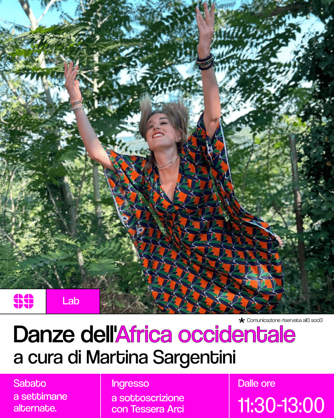 L’insegnante Martina Sargentini vi accompagnerà in questo viaggio energico e liberatorio alla scoperta dei passi tradizionali, dei ritmi potenti e delle storie che si celano dietro ogni movimento. Imparerai a connetterti con il tuo corpo in modo nuovo, esprimendo creatività e forza.