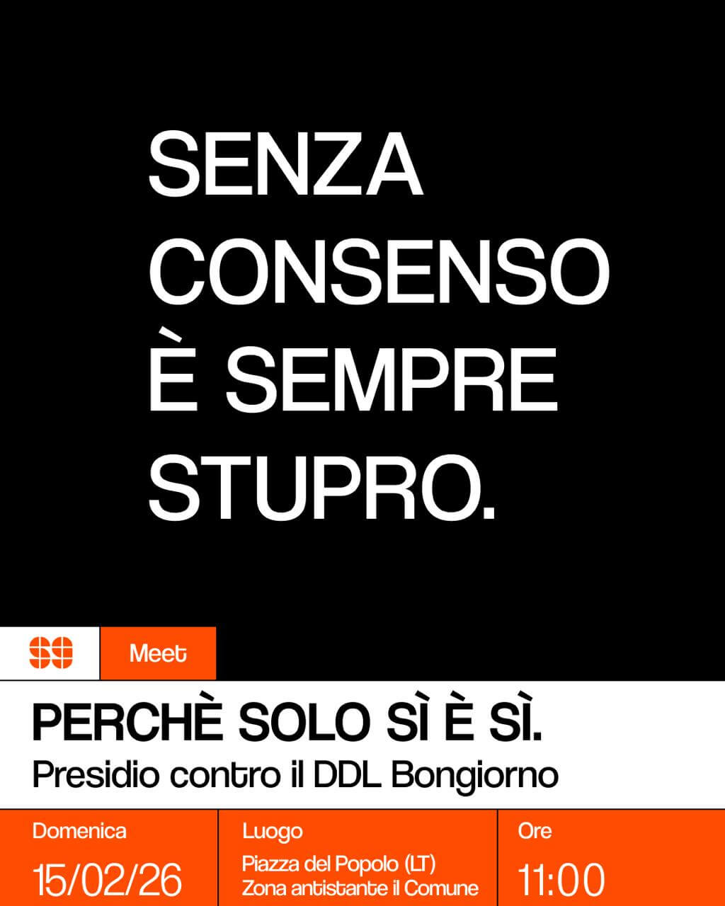 “Per rivendicare l’assoluta e inviolabile centralità del consenso, indebolita dal ddl Bongiorno, ritengo che sia una priorità per me essere in piazza. Invito chi voleva venire a meditare e che sente che “solo sì è sì” a fare l’ esperienza di portare in piazza la pace. Io parteciperò così o almeno ci proverò.