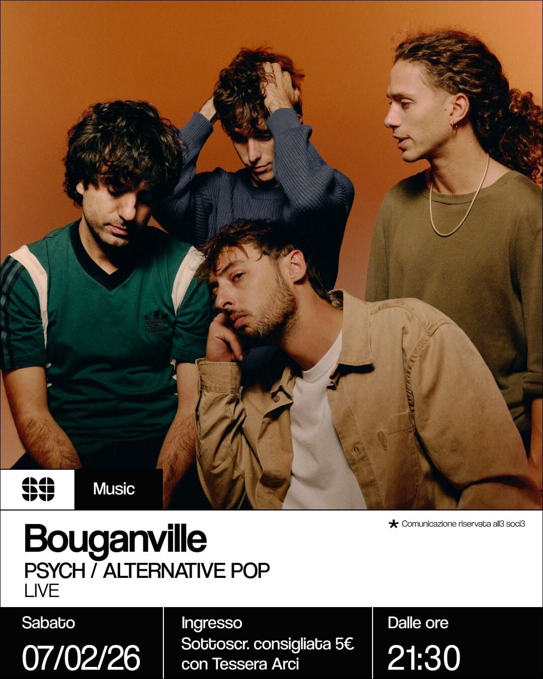 I Bouganville nascono a Roma dall’intesa tra Luciano Zirilli (voce, chitarra, piano), Luca Grillo (chitarra, voce), Gian Luca Fraddosio (basso, synth) e Luca Taurmino (batteria).