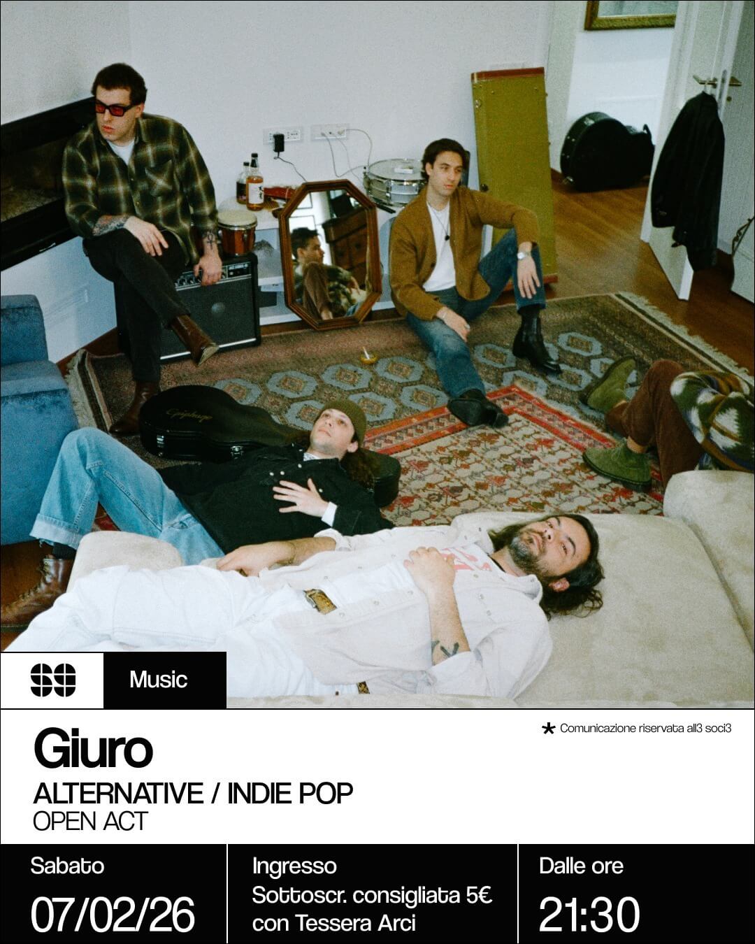 Chitarre distorte e acide, ritmi sinceri e testi labirintici compongono il linguaggio dei GIURO: canzoni che si fanno indossare, intime e graffianti, capaci di evocare immagini e stati d’animo complessi, spesso contraddittori.