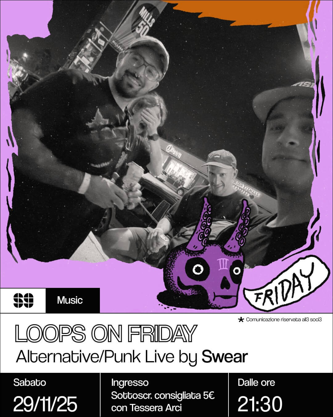 È la notte dove riff distorti e riverberi infiniti si incontrano, dove il grunge più crudo si fonde con le visioni eteree dello shoegaze in un vortice di emozioni e rumore.