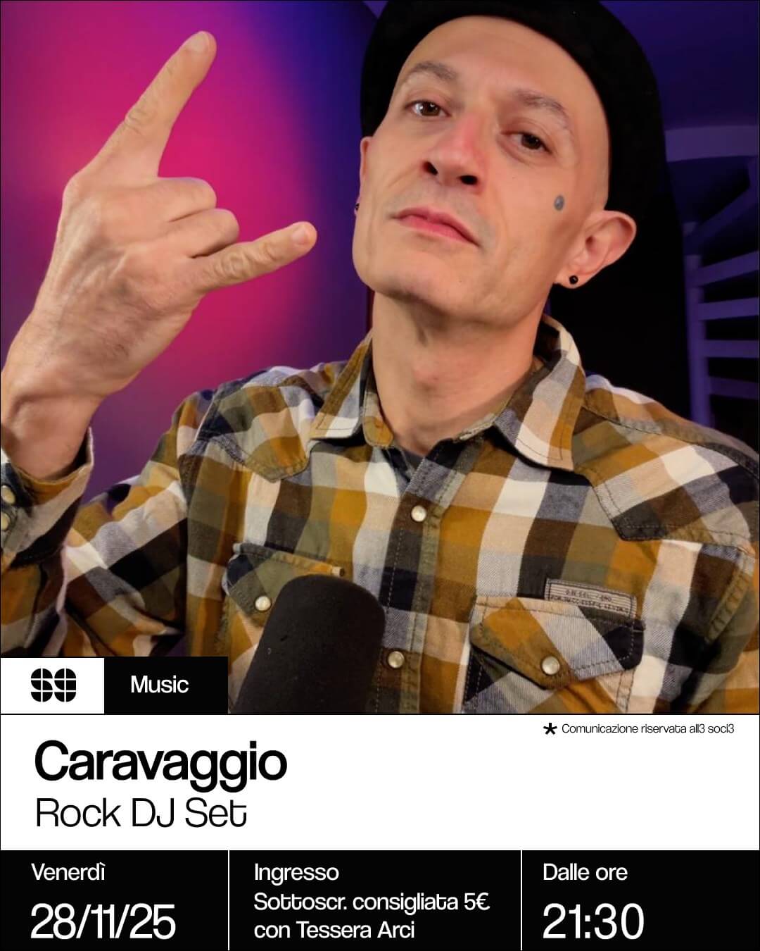 A concludere la serata in bellezza ci penserà Caravaggio con un Rock DJ Set da urlo, pensato per farvi finire di scatenare.